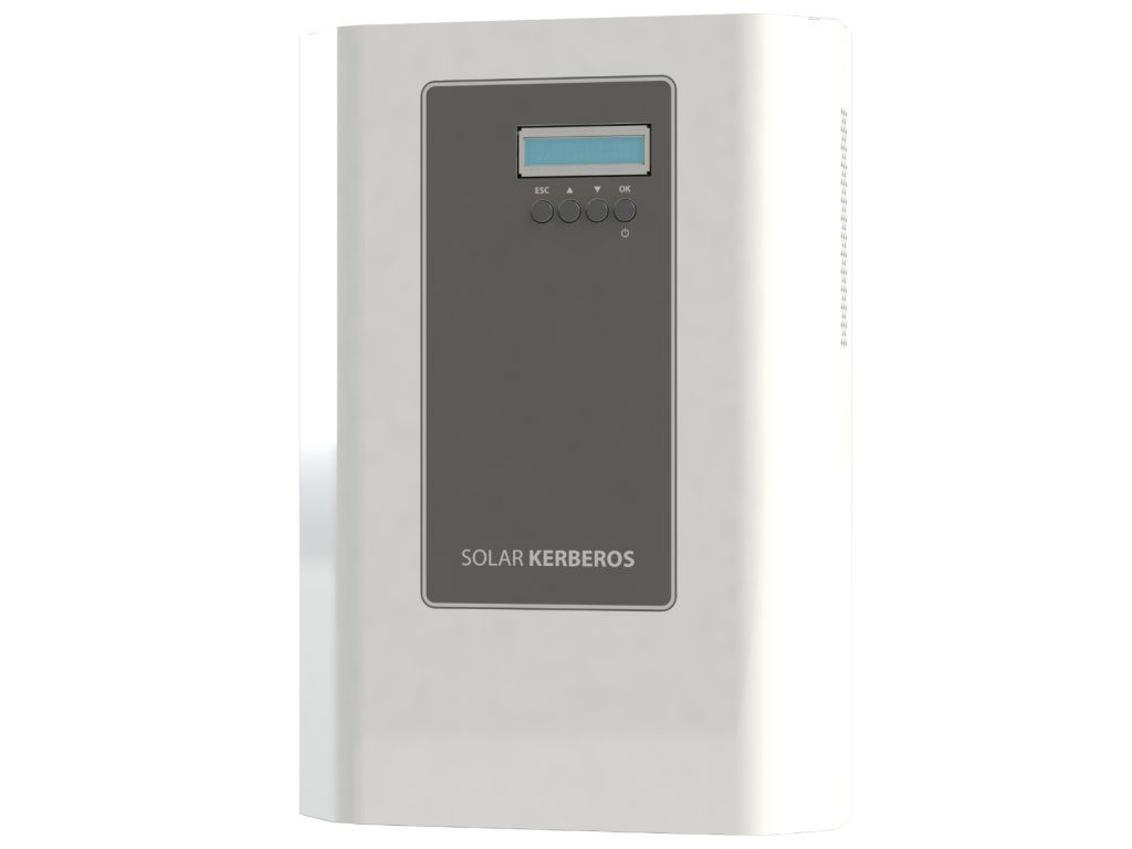 SOLAR KERBEROS je systém pro fotovoltaický akumulační ohřev vody se sledováním bodu maximálního výkonu (MPPT), který zajišťuje efektivní využití energie z fotovoltaických panelů.Solární systém SOLAR KERBEROS slouží k úspornému ohřevu vody pomocí energie ze solárních panelů. Díky technologii MPPT (Maximum Power Point Tracking) průběžně optimalizuje výkon panelů a maximalizuje využití vyrobené energie. DC/DC měnič zajišťuje vysokou účinnost systému a inteligentní řízení minimalizuje potřebu energie ze sítě.Systém je navržen pro jednoduchou instalaci a kompatibilitu s běžnými elektrickými bojlery. Umožňuje efektivní akumulaci energie ve formě ohřáté vody a poskytuje přehled o vyrobené i spotřebované energii.VÝHODY: Vysoká účinnost díky technologii MPPT Jednoduchá a nenákladná instalace Nízké zatížení střešní konstrukce Nejlevnější forma akumulace energie – ohřev vody Kompatibilní s běžnými elektrickými bojlery Efektivní ohřev vody i při proměnlivém slunečním záření Měření vyrobené i spotřebované energie Autodiagnostika systému Jednoduché ovládání Vyvinuto a vyrobeno v České republice Patentovaná technologieOBLASTI VYUŽITÍ: Rodinné domy Rekreační objekty a chaty Kontejnerové a modulární bydlení Tiny house projekty Instalace v programech typu NZÚ LightZÁKLADNÍ VLASTNOSTI: Typický instalovaný výkon fotovoltaických panelů: 2 – 3,3 kWp Doporučený výkon topného tělesa: 2 – 2,5 kW Regulace teploty: 10 – 80 °C Tepelná pojistka: ANO (elektronická)TECHNICKÁ DATA: Vstupní napětí naprázdno (limity): 160 – 340 VDC Rozsah MPP trackeru: 140 – 310 VDC Maximální proud: 10 A Maximální účinnost: 99 % Síťový přívod: 230 VAC / 50 Hz Maximální vstupní proud: 13 A Rozměry (v × š × h): 434 × 300 × 104 mm Hmotnost: 6 kg Krytí: IP20 Provozní teplota: +5 až +40 °C Skladovací teplota: −10 až +40 °C Maximální relativní vlhkost: 75 % (nekondenzující).